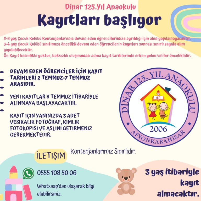 2025-2026 EĞİTİM ÖĞRETİM YILI KAYITLARI BAŞLIYOR...